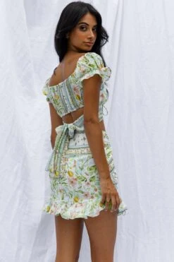 Adelia Ruched Puff Sleeve Floral Embroidery Dress Steel Blue