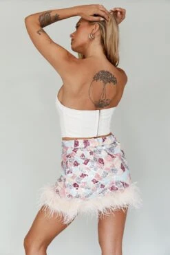 Sunset Boulevard Sequin Feather Mini Skirt Multi