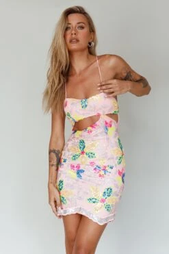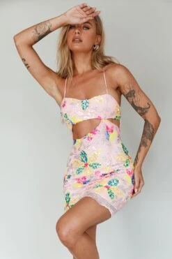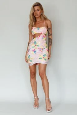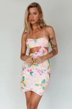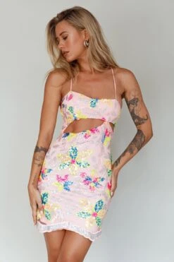 Steal the spotlight in our gorgeous Anu mini dress. Featuring floral sequin detail and a lave-up back. Perfect for a birthday celebration or girls’ night out. Team it with perspex heels and a purse for a look that will make jaws drop.