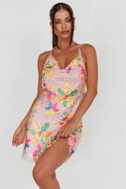 Steal the spotlight in our gorgeous Champagne Showers dress.We are loving the on-trend cowl neckline and flattering halterneck style. Perfect for a birthday party or nights out at your fave rooftop bar. Team it with bright heels and a small purse for an ultra chic look.