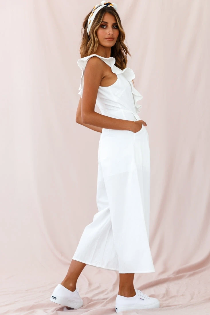 Cheryl Ruffle Strap Wide Leg Jumpsuit White