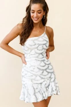 Turn heads in our gorgeous Eiza dress. Featuring the prettiest sequin embellishment detail throughout and a hot one-shoulder style. Perfect for a bridal shower or special occasion teamed with strappy, silver heels and a clutch. Cute!