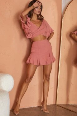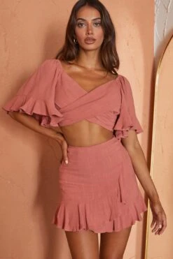 Get whisked away in our adorable Hand In Mine crop top. Perfect for day dates with bae or wear it out with your girls for extra style points. We love its breezy, bell sleeves and tied back. Team it with its matching skirt for an It Girl look.