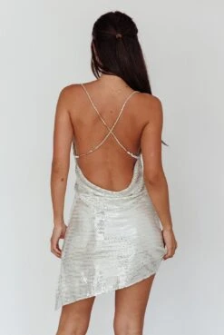 Illiana Diamante Strap Sequin Mini Dress Silver Black