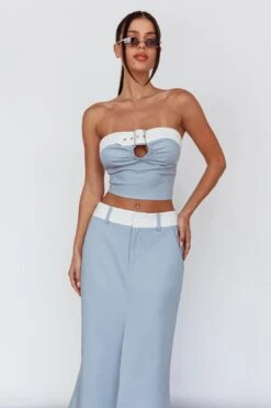 Channel your inner It Girl in our In My Era midi skirt. We are obsessed with its low rise cut and business suit look with its belt loops and pockets. Perfect for your 9-5 or a date night teamed with its matching top a tote and pointed kitten heels.