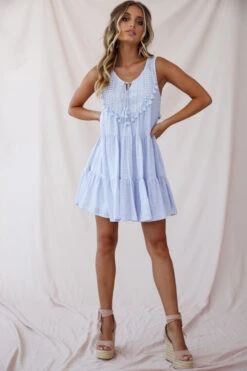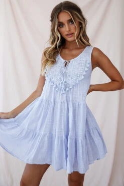 Perfect for sunny days at a park picnic with your besties, or thrown over your bikini at the beach, our Jada dress is a must-have. Partially lined and featuring a sleeveless design, drawstring tie neckline, relaxed kaftan style and crochet and tassel embellishment. This dress looks great styled with some canvas wedges and a fedora or crisp white sneakers for a playful look.