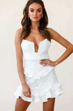 James Tiered Frill Mini Dress Lace White