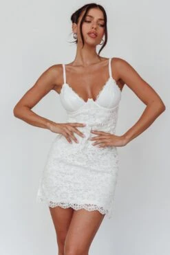 - White, lace mini dress