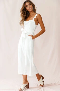 Kaia Ruffle Strap Wide-Leg Capri Jumpsuit White