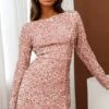 Karma Long Sleeve Keyhole Back Sequin Dress Gold