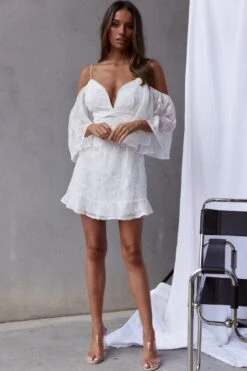 You’re a real life angel in our gorgeous Koda dress. Featuring the prettiest embroidered fabric, off-shoulder bell sleeves and stunning lace-up back. Perfect for a bridal shower or dressy work event. Team it with nude pumps and a chic clutch for an elegant look we are loving.