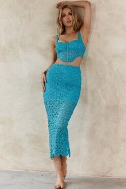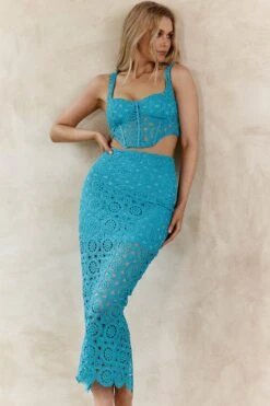 Make an entrance in our hot Milano crop top. We are in love with its pretty crochet lace throughout, perfect for weekend brunch dates with your besties. Team it with its matching midi skirt and mules for a chic look that’ll be sure to turn heads.