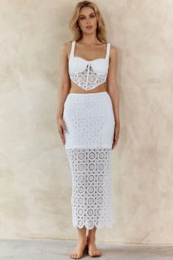Make an entrance in our hot Milano midi skirt. We are in love with its pretty crochet lace throughout, perfect for weekend brunch dates with your besties. Team it with its matching crop top and mules for a chic look that’ll be sure to turn heads.