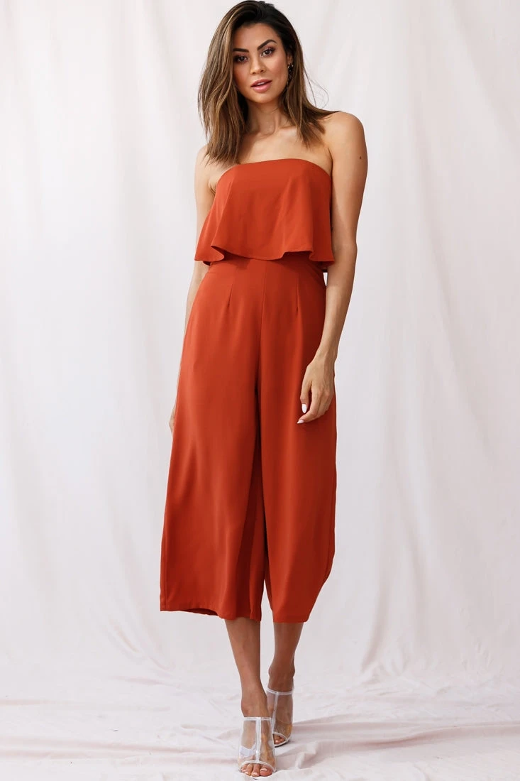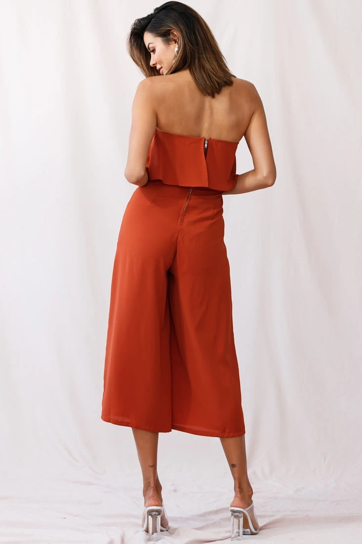 We are loving this chic and versatile jumpsuit. Wear it to the office or out for cocktails with the girls. Featuring a strapless bust and floaty frill overlay and fastening at the back with a zipper. This is a wardrobe staple as it can pull double duty on those days you don’t have time to go home and change after work. Simply through on a statement necklace or earrings and a red lip and hello girl, you’ve just gone from office chic to cocktail hour on fleek.