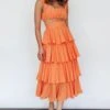 You will steal the show in our super hot Mood For Love midi skirt. Featuring a sexy front split, it’s perfect for warm nights at a chic rooftop bar. Team it with its matching crop top, mules and a tote.