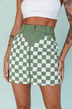 - Green checkered mini skirt