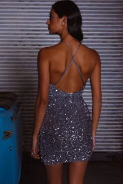 Steal the show in our super hot Serving Looks mini dress. We are obsessed with its iridescent sequins and open, criss-cross back! Perfect for your next birthday celebration or a glitzy night out on the town. Team it with on-trend platform heels and a clutch for a show stopping look!