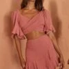 Make an entrance in our super cute Skye mini skirt. We are majorly crushing on its ruching detail in the front and flirty ruffle-trimmed hem. Perfect for a bridal shower or girls’ night out! Pair it with its matching crop top and winged-eyeliner for a come-hither look!