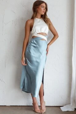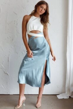 Social Butterfly Cut-Out Waist Midi Dress Teal