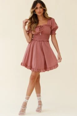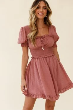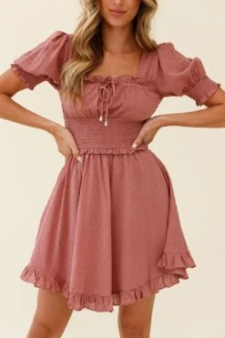 Summer In Paris Puff Sleeve Open Back Dress Rose