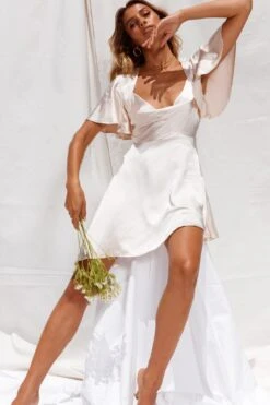 Jaws will drop as you strut by in our gorgeous Sydney dress. We are head over heels for its angelic bell sleeves, unique cowl neckline and asymmetrical hemline. Perfect for a bridal shower or special occasion. Team it with diamante heels and an elegant clutch for a luxe look we are loving.