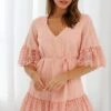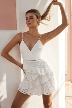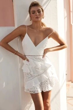 You will steal the show in our gorgeous Taurus dress. We are loving the feminine, floral embroidery detail, ruffle trim accents and hot cut-out back feature. Perfect for graduation or a bridal shower teamed with strappy, nude heels and a small purse for an elegant look we are loving.