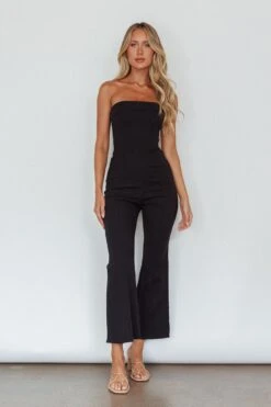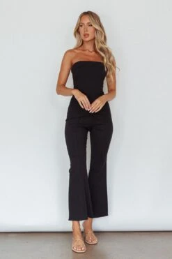 Make a statement in our chic What’s The Catch jumpsuit. Featuring a strapless style and small flare in the pants. Perfect for your 9-5 or lunch dates with your girls. Team it with mules and a tote for a look that will turn heads.