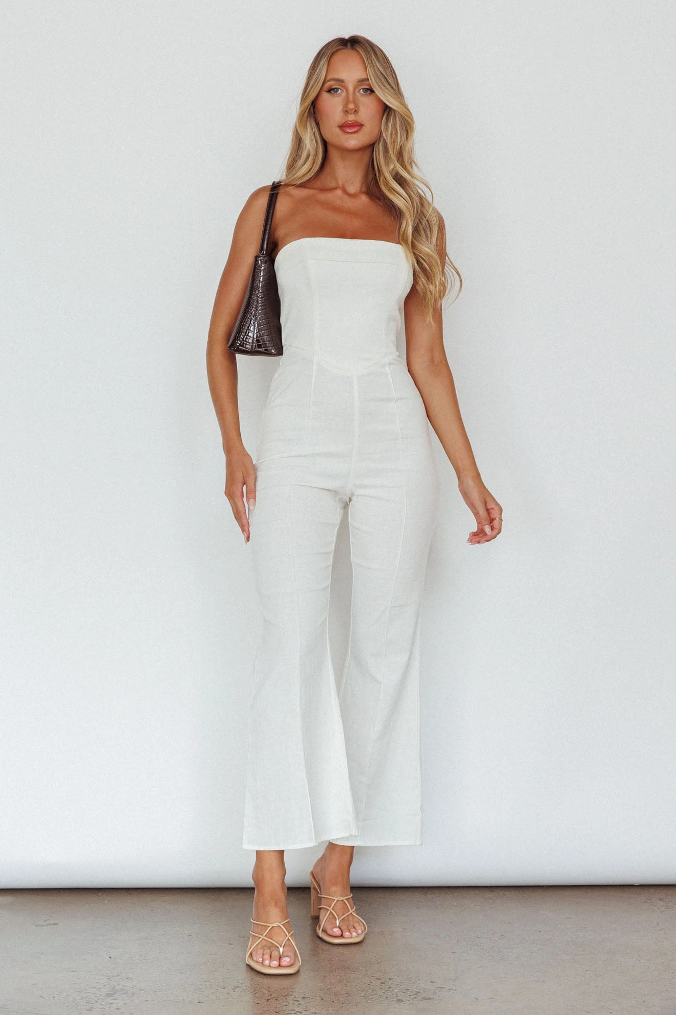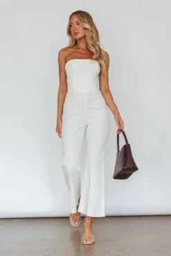 Make a statement in our chic What’s The Catch jumpsuit. Featuring a strapless style and small flare in the pants. Perfect for your 9-5 or lunch dates with your girls. Team it with mules and a tote for a look that will turn heads.