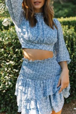 You’ll fall in love with our pretty Whisked Away crop top. We are obsessed with that feminine floral print and open, tie-up back. Perfect for dinner dates with your girls or a birthday bash. Team it with its matching skirt and mules for an adorable look.