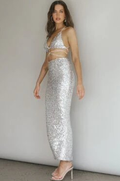 Steal the show in our stunning Zefa triangle top. We are obsessed with its sparkly sequin fabric, perfect for a glam girls’ night out! Team it with its matching skirt or jeans and a blazer for a look that’s sure to turn heads.