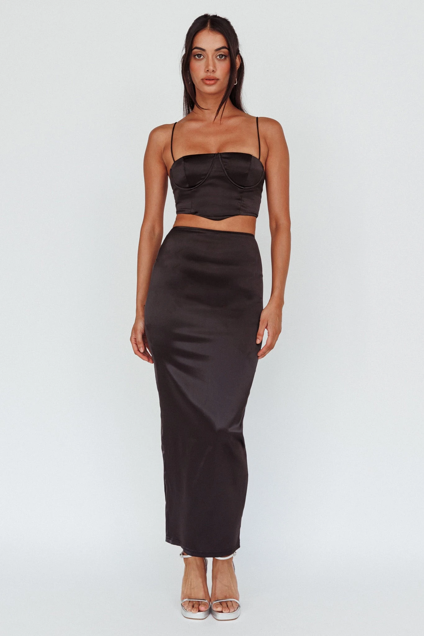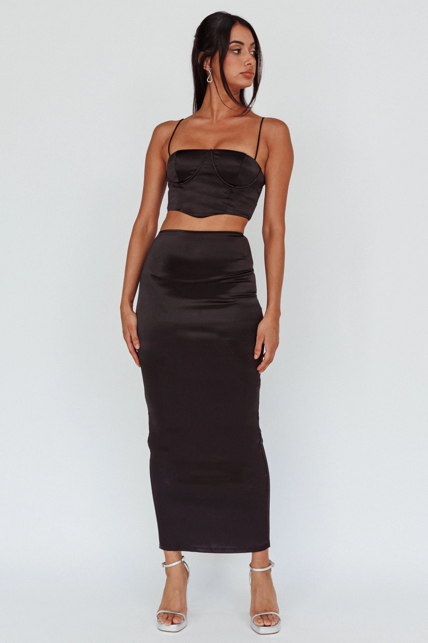 You’ll go straight to the best-dressed list in our super cute Zeina midi skirt. We are in love with its soft, satin fabric and on-trend hue! Perfect for a girls’ night out teamed with its matching crop top and strappy heels.